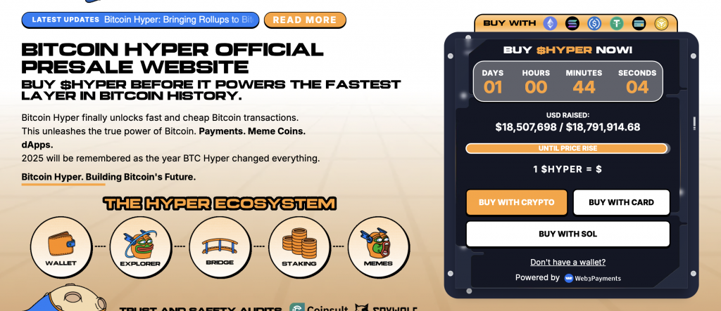 Bitcoin Hyper gehört derzeit zu den faszinierendsten Projekten im Kryptobereich, da es eine Layer-2-Lösung auf Basis von Solana entwickelt, die Bitcoin nicht nur schneller und günstiger machen soll, sondern auch völlig neue Anwendungsfälle eröffnet. Zum ersten Mal könnten BTC-Inhaber ihre Coins aktiv in DeFi-Anwendungen nutzen und durch Staking, Lending oder Yield Farming Renditen erzielen.