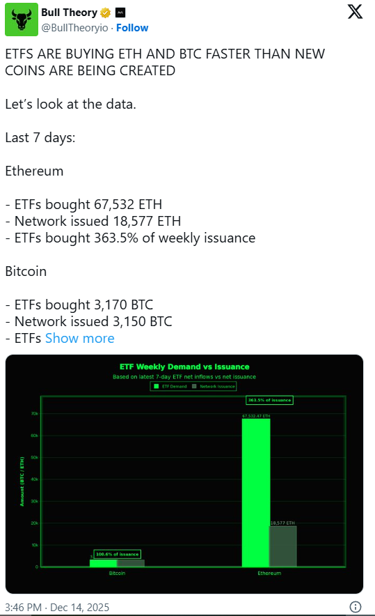 Institutionelle Nachfrage übersteigt Neuemissionen bei Bitcoin und Ethereum