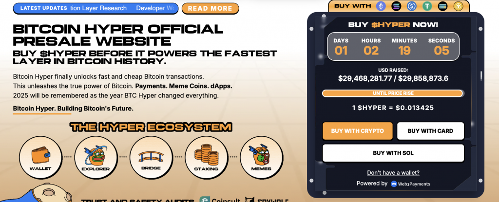 Anleger, die nicht nur auf die etablierten Coins setzen wollen, suchen nach Altcoins, die deutlich höhere Renditen erzielen können. Einer der vielversprechendsten Kandidaten ist Bitcoin Hyper. Die neue Layer-2-Lösung setzt darauf, Bitcoin vollständig in den DeFi-Sektor zu integrieren und damit Funktionen zu ermöglichen, die bisher nur auf Plattformen wie Ethereum oder Solana verfügbar waren. Durch die Anbindung an die Solana Virtual Machine werden Transaktionen extrem schnell und kostengünstig, während gleichzeitig die Sicherheit des Bitcoin-Netzwerks erhalten bleibt.
