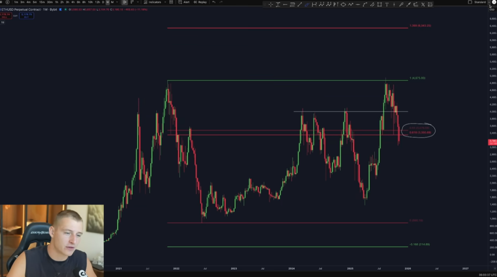Ethereum bleibt im Gleichschritt mit Bitcoin unter Druck. Der Chart testet die Zone um 3.000 US-Dollar, die in früheren Wochen mehrfach gedient hatte, um neue Bewegungen zu starten. Gleichzeitig notiert der Kurs unter dem goldenen Fibonacci Bereich, der lange als Akkumulationsfenster gegolten hatte.