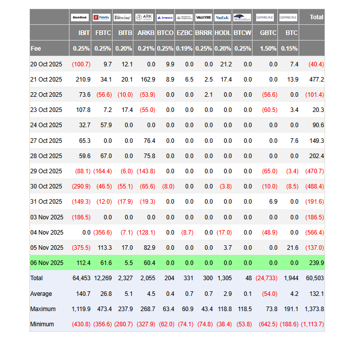Auch die ETFs haben gestern wieder gekauft, Quelle: https://farside.co.uk/btc/
