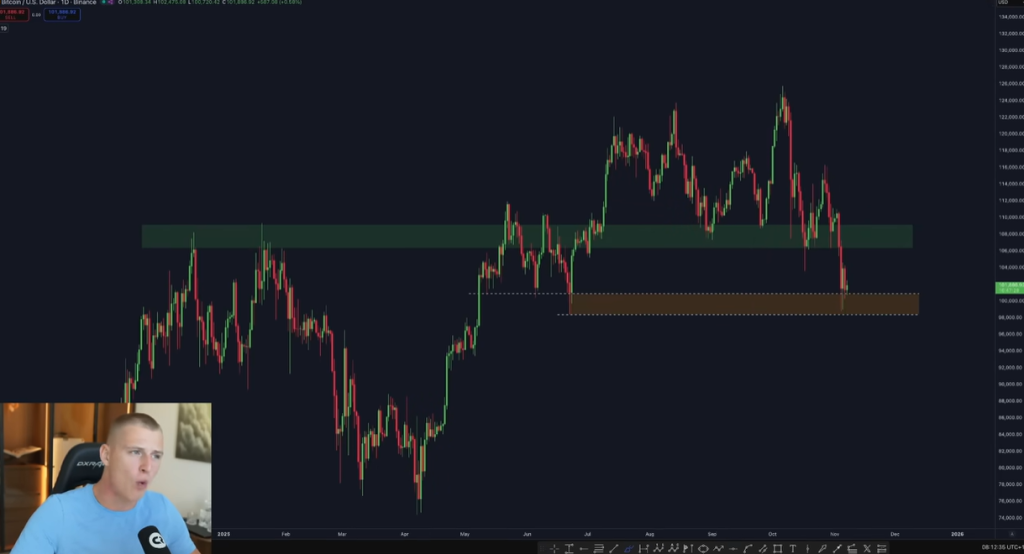 Auf den größeren Zeiteinheiten zeigt sich, dass Bitcoin an einer historischen Unterstützungszone angekommen ist. Genau hier hatten in früheren Marktzyklen bereits mehrere Bodenbildungsphasen begonnen. Viele Trader hoffen auf ein W-Muster, wie es auch bei früheren Korrekturen zu beobachten war. Aus technischer Sicht befindet sich Bitcoin damit an einem Punkt, an dem erneute Käufe einsetzen könnten.