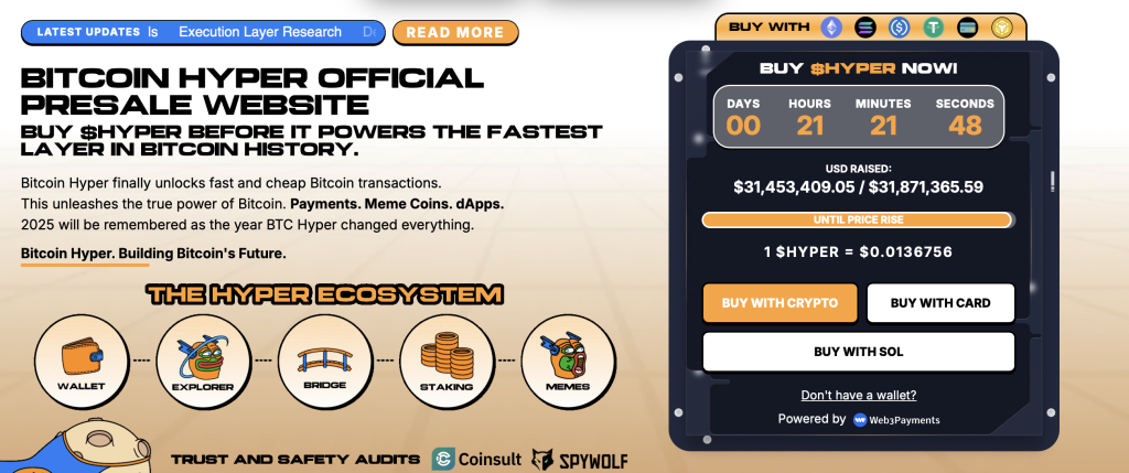 ($HYPER Token-Vorverkauf – Quelle: Bitcoin Hyper Website)