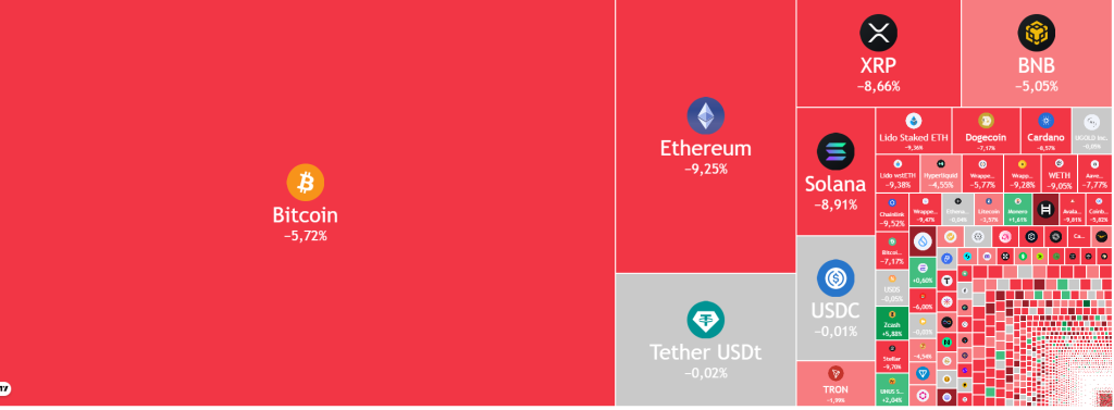 Der Bitcoin Kurs hat genau das getan, wovor viele gewarnt hatten. Ein kurzer Anstieg in Asien, dann ein harter Abverkauf in New York. Das vorherige Tief wurde ohne Gegenwehr unterschritten, der Markt zeigt kaum Stabilität. Bitcoin rutschte auf neue Tiefstände, Altcoins folgten. Nahezu alles zweistellig im Minus, während nur wenige Ausreißer im Plus landeten.