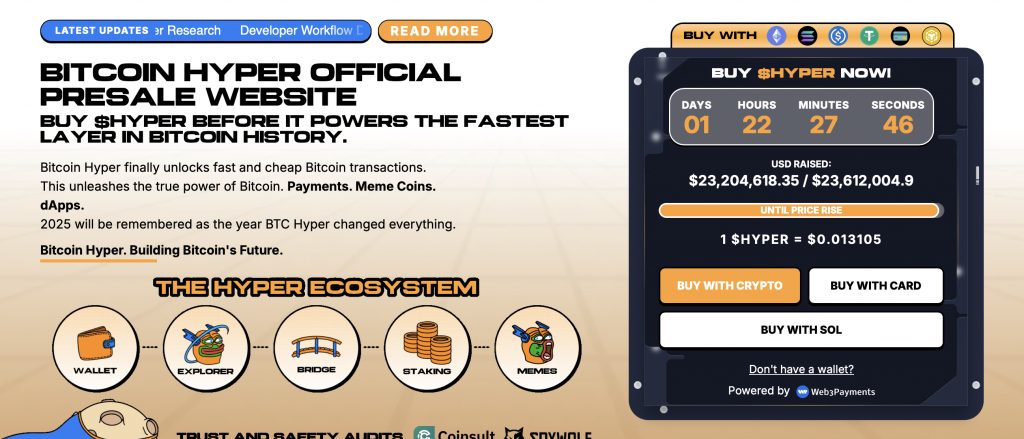 Während der breite Markt in einer Korrektur feststeckt, trotzt Bitcoin Hyper dem Trend. Die Nachfrage nach dem neuen Projekt steigt rasant, denn hier entsteht eine Layer-2-Lösung, die als echtes Upgrade für Bitcoin gilt. Die sogenannte Hyper Chain, aufgebaut auf der Solana-Blockchain, soll es Anlegern ermöglichen, Bitcoin im DeFi-Bereich zu nutzen, etwa für Staking, Lending oder andere Anwendungen.