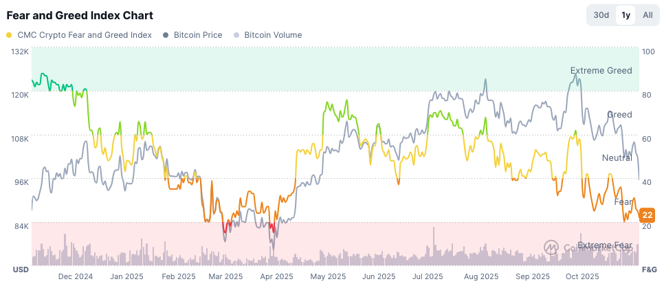 Ethereum, XRP, Solana und zahlreiche weitere Altcoins wurden noch härter getroffen. Die Marktstimmung liegt laut Fear-and-Greed-Index jetzt bei nur 22 Punkten („Fear“).