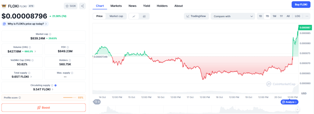 Flocki mit “Musk Fake out”, Quelle: www.coinmarketcap.com