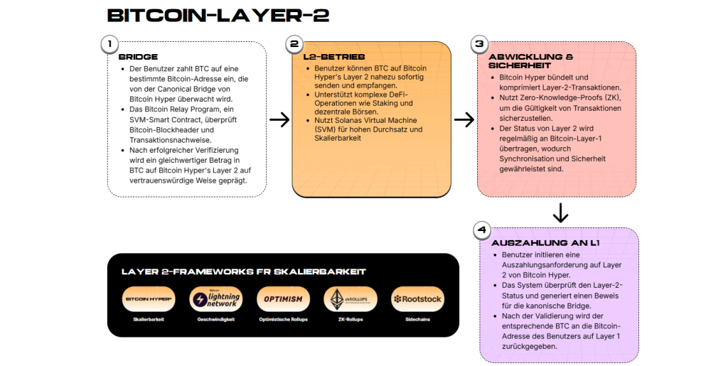 Layer 2 Aufbau für maximale Skalierbarkeit, Quelle: https://bitcoinhyper.com/de