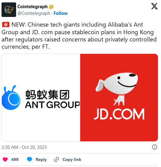 In einer dramatischen Wendung haben große chinesische Technologieunternehmen wie Ant Group von Alibaba und JD.com ihre Pläne zur Einführung von in Hongkong ansässigen Stablecoins nach verstärkter Aufsicht durch Pekinger Behörden ausgesetzt. Die Volksbank von China (PBOC) und die Cyberspace Administration of China (CAC) griffen direkt ein und forderten diese Unternehmen auf, ihre Pläne angesichts von Bedenken über die Entwicklung privat geführter digitaler Währungen abzusagen.