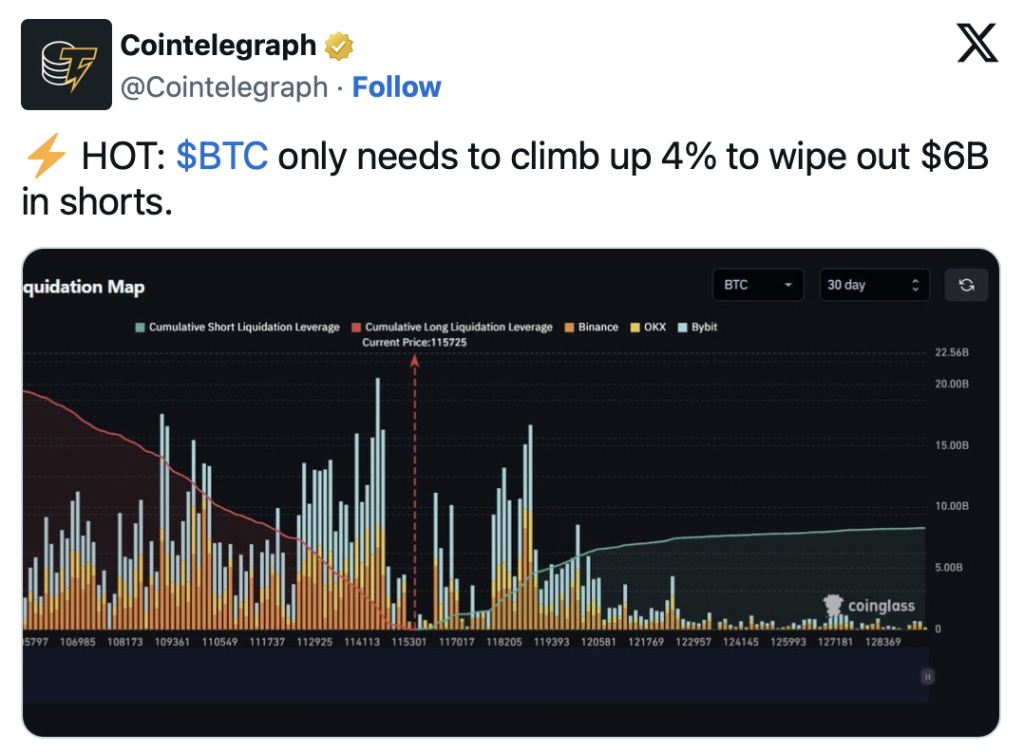 Die erste Euphorie ist am Kryptomarkt verflogen. Der Bitcoin-Kurs stagniert seit Wochen und das hat dazu geführt, dass viele Trader auf fallende Kurse setzen. Entsprechend hoch ist das Kapital, mit dem Trader Short-Positionen eröffnet haben. Wie sich zeigt, könnten bei Bitcoin schon bald Short-Positionen im Wert von 6 Milliarden Dollar liquidiert werden.