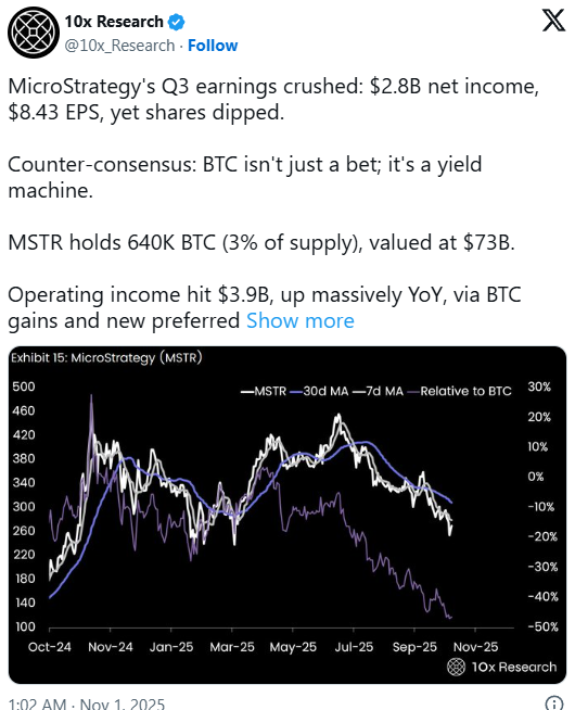 Der jüngste Quartalsbericht von Strategy Inc demonstriert die beeindruckende Dimension, in der die börsennotierte Bitcoin-Treasury mittlerweile agiert. Das Unternehmen veröffentlichte am 30. Oktober seine Zahlen zum dritten Quartal und meldete einen Nettogewinn von 2,8 Milliarden US-Dollar. Das bereinigte Ergebnis pro Aktie lag mit 8,42 US-Dollar über den Konsensschätzungen.