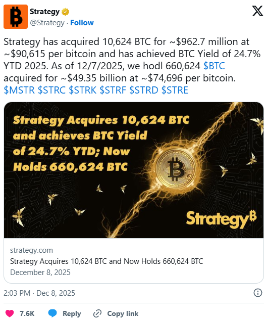Michael Saylor hat erneut zugeschlagen und diesmal im besonders großen Stil: Der CEO von Strategy hat in der vergangenen Woche 962 Millionen Dollar in die Hand genommen, um 10.624 Bitcoin zu kaufen. Damit handelt es sich um eine deutlich größere Investition als bei den letzten Käufen. Saylor ist in der Krypto-Szene inzwischen eine Legende, und wenn er so weitermacht, könnte er Satoshi Nakamoto schon bald als größten Bitcoin-Wal der Welt überholen. Inzwischen hält sein Unternehmen Strategy 660.624 Bitcoin im Wert von über 60 Milliarden Dollar bei einem durchschnittlichen Kaufpreis von knapp 75.000 Dollar.