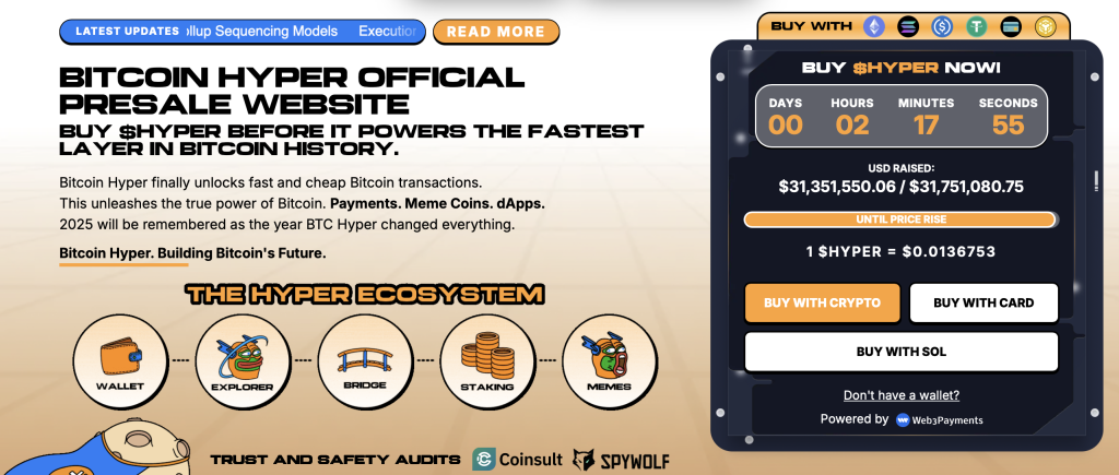 Neben etablierten Strategien rücken auch neue Projekte stärker in den Fokus. Bitcoin Hyper verfolgt das Ziel, Bitcoin um eine leistungsfähige Layer-2-Ebene zu erweitern und damit Anwendungsfälle wie Smart Contracts und DeFi-Funktionen zu ermöglichen. Durch moderne Skalierungstechnologien sollen Transaktionen deutlich schneller und günstiger abgewickelt werden, ohne die Sicherheit der Bitcoin-Blockchain zu gefährden. Außerdem soll es möglich werden, auch mit Bitcoin Zinsen durch Staking, Lending und viele weitere Anwendungen zu verdienen, was den Markt auf ein komplett neues Level heben könnte.