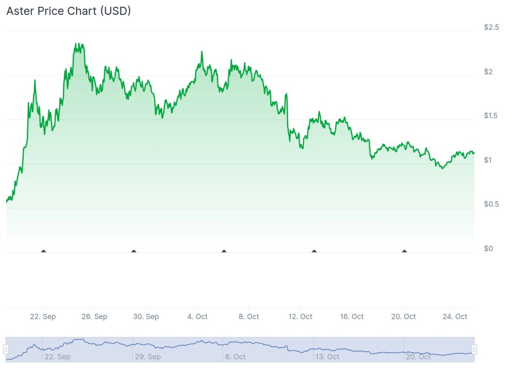 Dahinter steht die gleichnamige neue DEX-Börse Aster, welche etablierten Größen wie Hyperliquid Konkurrenz machen will. Direkt zum Start verzeichnete sie ein hohes Tradingvolumen und konnte satte Gewinne einfahren. Der erste Hype um ASTER kühlte jedoch schnell wieder ab, und nach dem 24. September folgte zunächst eine Konsolidierung zwischen 1,50 $ und 2,20 $.