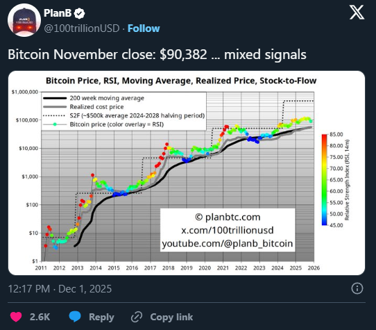 Der Schöpfer des bekannten Stock-to-Flow-Modells, PlanB, hat in einer neuen Analyse die aktuelle Bitcoin-Marktsituation bewertet und eine Prognose für den Dezember abgegeben. Seine Einschätzung fällt überraschend differenziert aus und sorgt in der Community für neues Diskussionspotenzial. Um Klarheit zu schaffen, ordnet PlanB die Lage entlang mehrerer wichtiger Indikatoren ein: RSI, Vierjahreszyklus, Realized Price, Moving Average und sein eigenes Stock-to-Flow-Modell. Die Analyse deutet darauf hin, dass sich Bitcoin in einer entscheidenden Phase befindet.