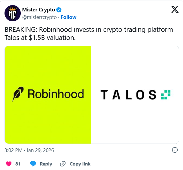 Mit der Beteiligung an der institutionellen Krypto-Handelsplattform Talos positioniert sich Robinhood zunehmend über das klassische Retail-Geschäft hinaus. Talos stellt professionelle Werkzeuge für Orderausführung, Liquiditätsaggregation, Risiko-Management und Post-Trade-Abwicklung bereit und richtet sich gezielt an Banken, Asset Manager und Trading-Firmen. Genau dieser Bereich gewinnt im Kryptomarkt an Bedeutung, da institutionelle Investoren regulierungstaugliche und skalierbare Lösungen benötigen.