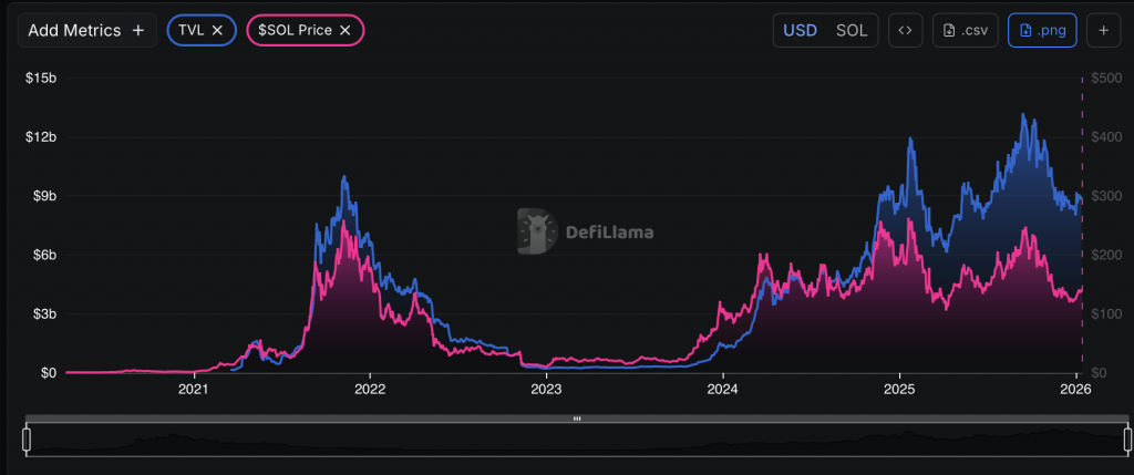 Auch die Fundamentaldaten liefern unterstützende Signale. Solana-basierte Anlageprodukte verzeichneten zuletzt kontinuierliche Kapitalzuflüsse, während die Netzwerkaktivität mit über 60 Millionen Transaktionen pro Tag auf einem konstant hohen Niveau bleibt. Gleichzeitig ist der Total Value Locked im Verhältnis zum Kurs nur moderat gesunken. Für viele Analysten ist diese Kombination typisch für Marktphasen, in denen sich mittelfristige Aufwärtspotenziale aufbauen.