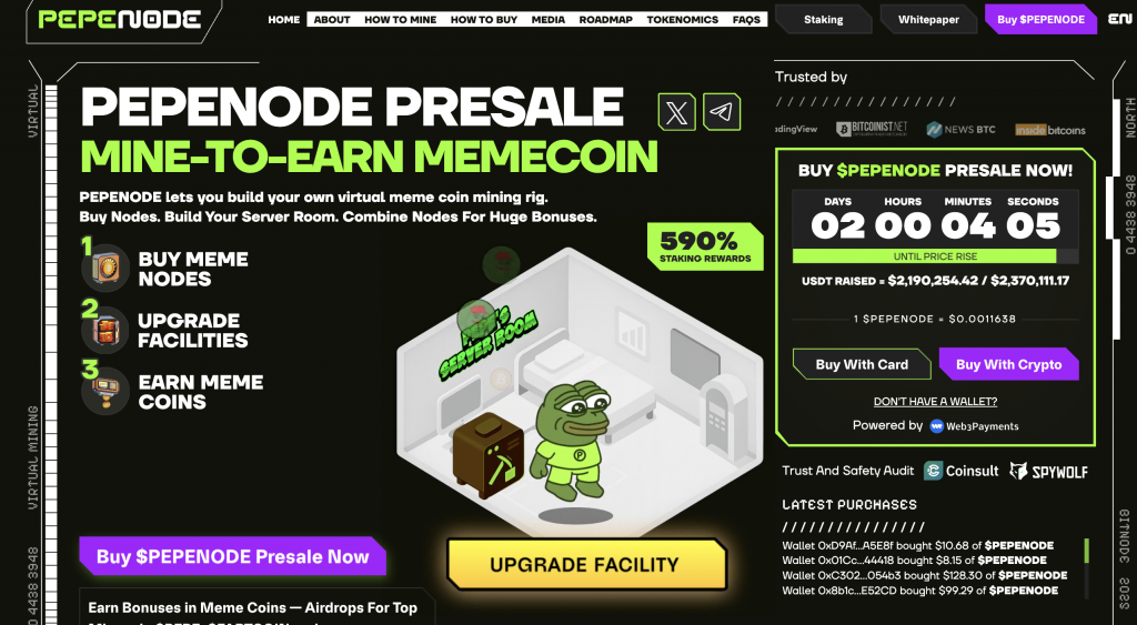 Das Projekt PepeNode sorgt parallel zur Marktentwicklung im Meme-Segment für zusätzliche Aufmerksamkeit. Das Konzept kombiniert ein Mine-to-Earn-Modell mit einem gamifizierten Ansatz, bei dem Nutzer virtuelle Mining-Rigs und Nodes innerhalb einer browserbasierten Simulation betreiben und dafür Tokens verdienen. Ein aktueller Bericht nennt ein Presale-Volumen von etwa 2,25 Millionen US-Dollar. Obwohl PepeNode bislang weder auf zentralisierten noch dezentralen Börsen als handelbares Trading-Pair verfügbar ist, spielt der Hype für Solana dennoch eine Rolle.