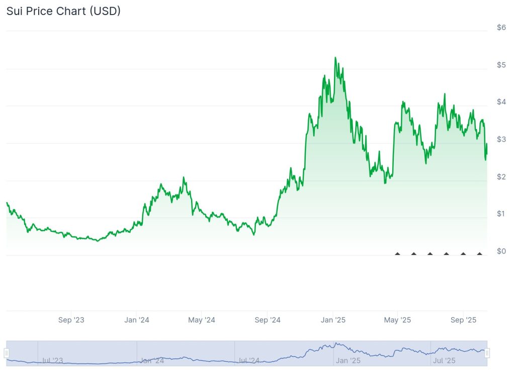 SUI ist deutlich von seinem Höchststand bei 5,35 $ zurückgefallen