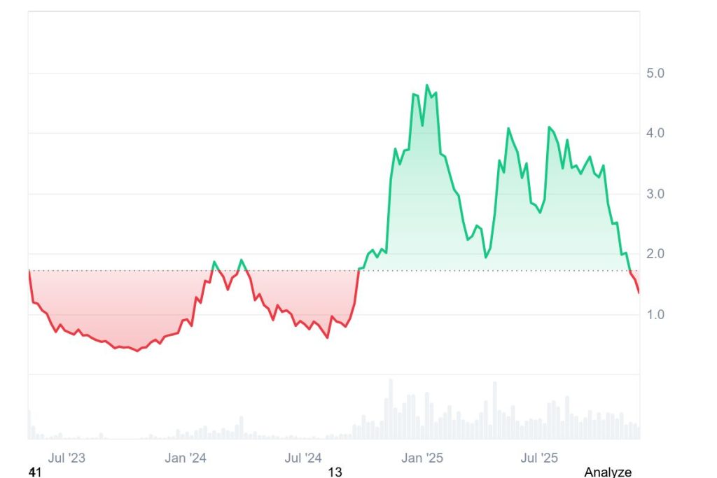 Der Top-Altcoin SUI gehört zu den größten Verlierern des Abschwungs der letzten Monate im Kryptomarkt. Nachdem der Coin ja noch zu Beginn des Jahres einen massiven Hype erlebt hatte und auf ein All-Time-High von bis zu 5,35 $ angestiegen war, verlor die weitere SUI-Rallye im Verlauf des Jahres immer mehr an Momentum. Im Juli gelang es den Bullen zumindest noch einmal, den Kurs bis zum 4-$-Widerstand zu steigern. Dort gab es jedoch eine klare Ablehnung, und es folgte zunächst eine Konsolidierung über dem 3-$-Support.