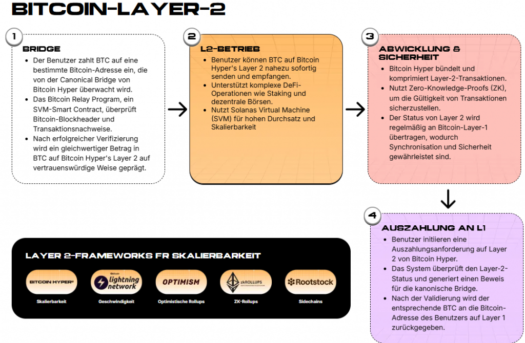 Das Konzept von Bitcoin Hyper folgt einer klaren technischen Logik. Bitcoin selbst bleibt unverändert und behält seine Rolle als sicheres Abwicklungssystem. Alle komplexen und rechenintensiven Prozesse werden ausgelagert. Im Zentrum steht die leistungsfähige Solana Virtual Machine, die viele Vorgänge gleichzeitig verarbeiten kann. Über eine spezielle Bridge lassen sich Bitcoin in tokenisierter Form in dieses System übertragen. Der native HYPER-Token übernimmt innerhalb dieses Systems zentrale Funktionen. Der Erwerb von HYPER erfolgt über die offizielle Website des Projekts, und nach dem Kauf können die Token direkt gestakt werden. Aktuell liegt die Staking-Rendite bei rund 39 Prozent APY.