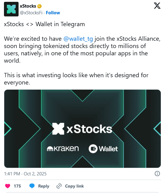 xStocks macht tokenisierte Aktien in Telegram zugänglich