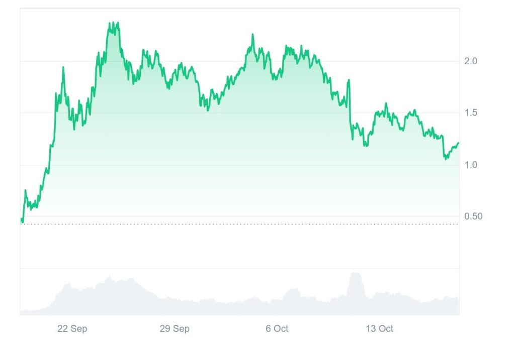 Für die native Kryptowährung ASTER ging es seit dem Allzeithoch jedoch wieder ein gutes Stück abwärts. Viele frühe Investoren realisierten Profite, wodurch der Verkaufsdruck oft den Kaufdruck überwog. Daraus resultierte eine kontinuierliche Abwertung, die gestern in einem Kursrückgang auf zeitweise nur noch 1,03 $ gipfelte.