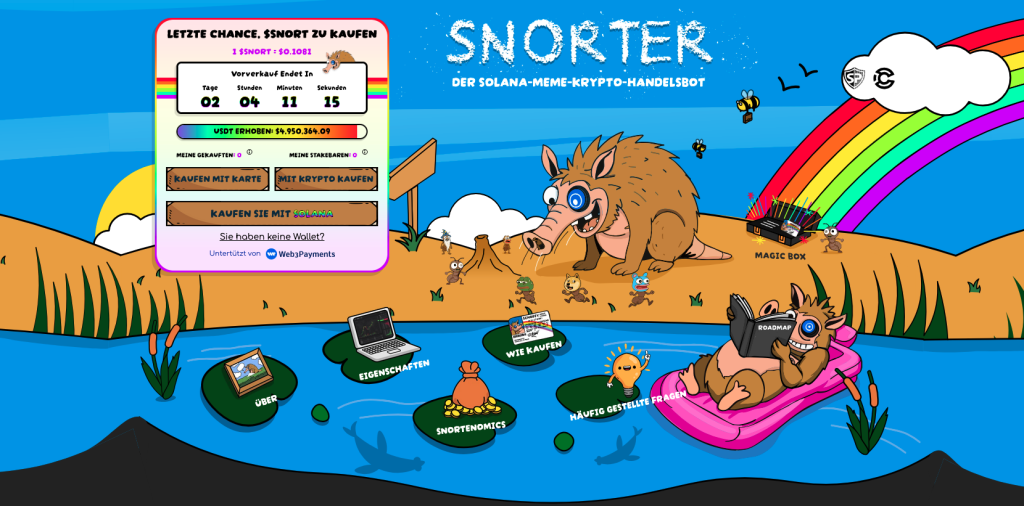 Aktuell läuft nämlich noch der Vorverkauf der nativen Kryptowährung des dahinterstehenden Projektes Snorter. Bei SNORT handelt es sich um einen Meme-Coin mit witzigem Maskottchen und wachsender Reichweite auf Social Media. Der Hype nimmt in den letzten Tagen immer mehr an Fahrt auf und bis jetzt kamen schon über 4,9 Millionen $ an Funding zusammen.