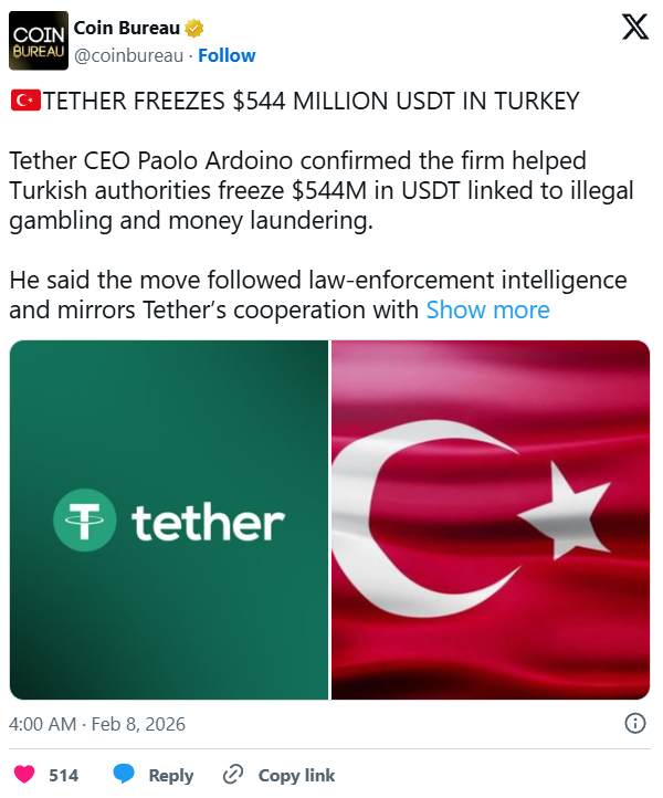 Die türkischen Behörden haben im Zuge eines groß angelegten Ermittlungsverfahrens Krypto-Vermögen im Wert von rund 544 Millionen US-Dollar eingefroren. Betroffen sind USDT-Bestände, die mutmaßlich aus illegalem Online-Glücksspiel und Geldwäsche stammen sollen. Der Fall sorgt international für Aufmerksamkeit, da er zeigt, wie stark Stablecoin-Emittenten mittlerweile in staatliche Maßnahmen eingebunden sind.