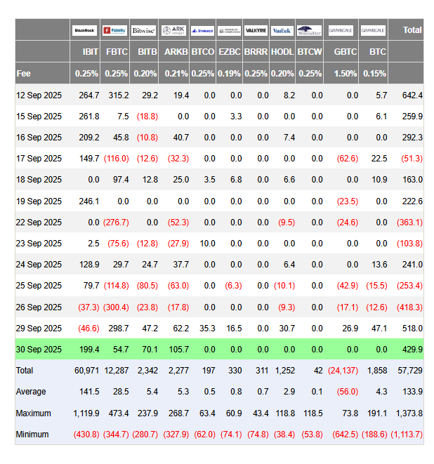 Kein echter Abbruch zu erkennen, Quelle: https://farside.co.uk/btc/