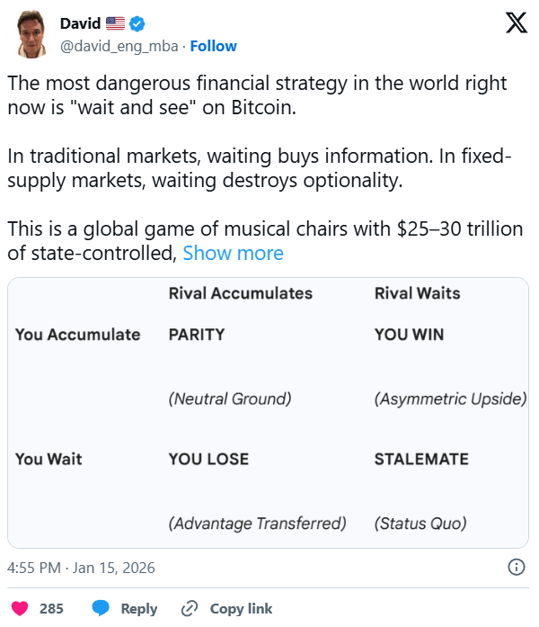 In vielen Finanzmärkten gilt Abwarten als vorsichtige Strategie, um Risiken zu minimieren und Entwicklungen zu beobachten. Im Bitcoin-Markt könnte genau dieses Verhalten jedoch zunehmend zum Nachteil werden. Analysten weisen darauf hin, dass das feste Angebot von Bitcoin ein Umfeld schafft, in dem Zeit nicht automatisch mehr Sicherheit bedeutet, sondern dazu führen kann, dass Einstiegschancen verloren gehen.
