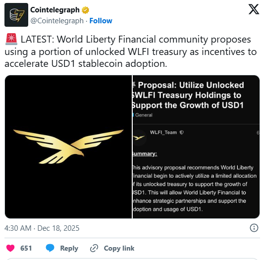 Aktuell steht ein großer strategischer Schritt von World Liberty Financial im Fokus: Ein Governance-Vorschlag sieht vor, rund 5 Prozent der Projekt-Treasury zu mobilisieren, um etwa 120 Millionen US-Dollar in Wachstumsmaßnahmen für den USD1-Stablecoin zu investieren. Diese Maßnahme würde Teile der vorhandenen Reserven freisetzen, die laut jüngsten Schätzungen bei rund 2,4 Milliarden Dollar liegen, um die Akzeptanz und Liquidität des Stablecoins zu steigern.