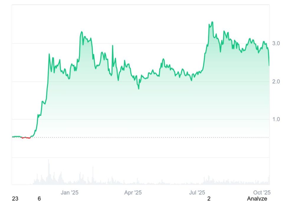Einen Großteil des bisherigen Jahres konsolidierte XRP dann über der 2-$-Marke, bevor es im Juli nochmals mit einer stillen Rallye auf bis zu 3,65 $ aufwärtsging. Das war der höchste Stand, den XRP seit seiner Allzeithoch-Rallye von 2018 verzeichnete. Im August und September konsolidierte der Ripple Coin um beziehungsweise knapp unter dem 3-$-Widerstand, und die Bullen kämpften darum, nachhaltig darüber auszubrechen.