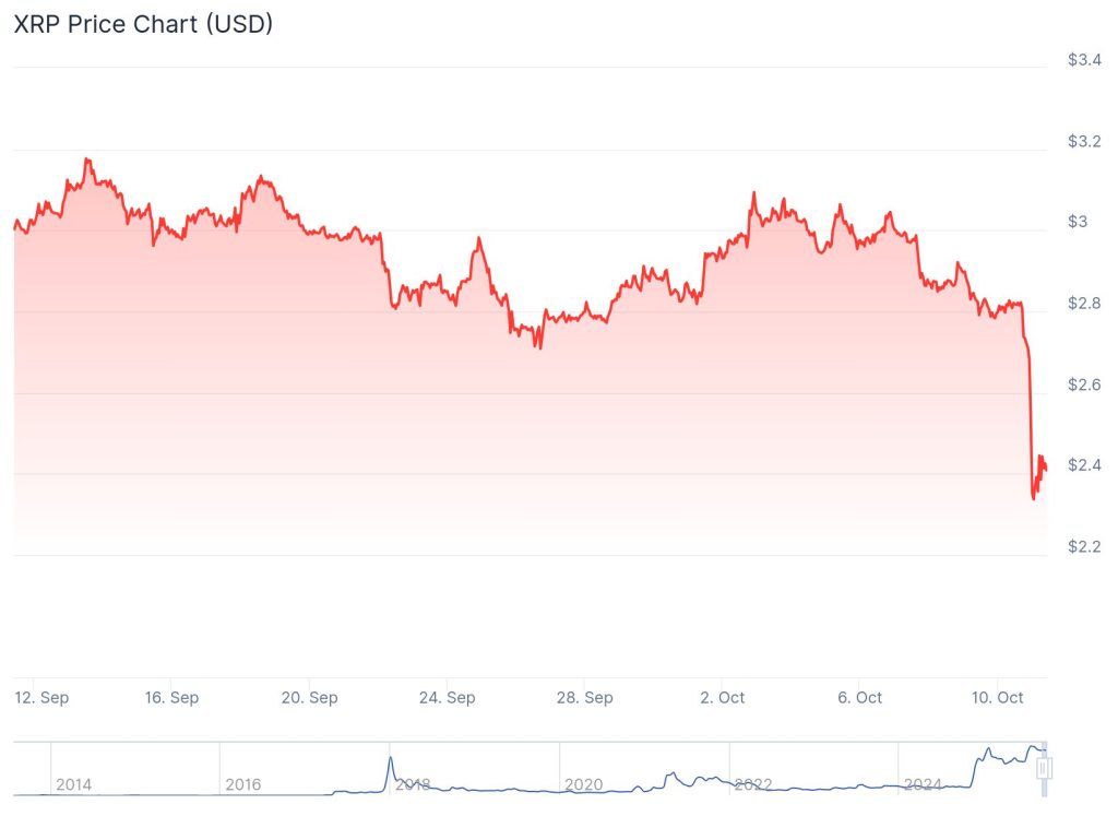 Der Ripple-Coin gerät nach einer monatelangen Rallye zunehmend unter Druck. Innerhalb von nur 24 Stunden fiel der Kurs um ganze 15 % und verlor dabei den wichtigen Support bei 2,73 $. Auslöser der plötzlichen Abwärtsbewegung ist Trumps überraschende Ankündigung massiver Strafzölle gegen China. Jetzt stellt sich die Frage, ob XRP im Oktober weiter abrutschen und den 2-$-Support testen könnte.
