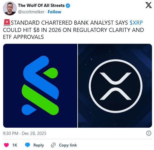 Neben technischen Faktoren gewinnen fundamentale Argumente zunehmend an Bedeutung. So äußerte sich unter anderem ein Analyst der Standard Chartered Bank optimistisch und hält im Jahr 2026 Kursregionen um 8 US-Dollar für erreichbar, vorausgesetzt, regulatorische Klarheit und weitere ETF-Zulassungen kommen zustande. Genau hier sehen viele XRP-Bullen den entscheidenden Hebel. Nicht neue technologische Durchbrüche, sondern klare rechtliche Rahmenbedingungen gelten als zentraler Auslöser für eine Neubewertung.