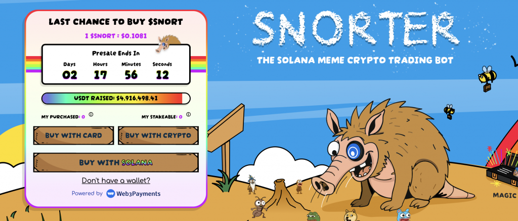 Ein Projekt, das derzeit besonders im Fokus der Anleger steht, ist Snorter ($SNORT). Es geht über einen typischen Meme Coin hinaus und bringt zusätzlich einen Trading Bot auf den Markt, der den Handel mit Kryptowährungen vereinfacht. Der Bot ist direkt in den Telegram-Messenger integriert, wodurch er sich besonders leicht bedienen lässt und eine niedrige Einstiegshürde bietet.