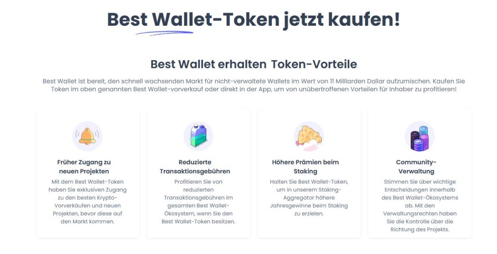Schon heute gehört Best Wallet zu den großen Spielern am Markt, nachdem das Projekt erst 2024 herausgekommen ist. Heutzutage nutzen monatlich über 500.000 Kunden die Krypto-Wallet, die ein ganzes Ökosystem bietet. Denn hier können nicht nur die eigenen Kryptowährungen aufbewahrt werden, sondern auch ein Kauf und Verkauf von Coins wird ermöglicht. Weiterhin gibt es ein eigenes Presale-Launchpad für neue Token, die Best-Krypto-Debit-Karte sowie einen eigenen Staking-Bereich.