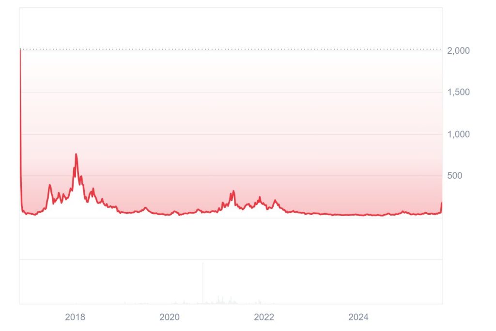 Im Bullenmarkt 2018 und 2021 gab es zwar noch weitere Rallyes, die führten den Kurs jedoch nur auf 750 $ beziehungsweise etwas über 300 $ aufwärts. Im aktuellen Bullenmarkt hatte es für ZEC lange Zeit sogar noch deutlich schlechter ausgesehen. Den ersten “Höchststand” gab es im Dezember 2024 bei rund 75 $. Das änderte sich jedoch im Verlauf der letzten 2 Wochen schlagartig: Das Kaufinteresse an ZEC schnellte in die Höhe, und der Kurs schoss rasch über die 100-$-Marke.