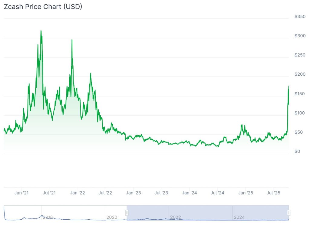 Innerhalb von nur 24 Stunden ist der Kurs der Privacy-Kryptowährungum ZEC ganze 29,15 % in die Höhe geschossen und hat damit den höchsten Stand seit 2022 erreicht. Getrieben wird die Rallye von wachsender institutioneller Nachfrage, neuen ETF-Spekulationen und einem wiedererstarkten Interesse am Thema Datenschutz im Krypto-Sektor.